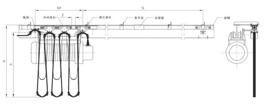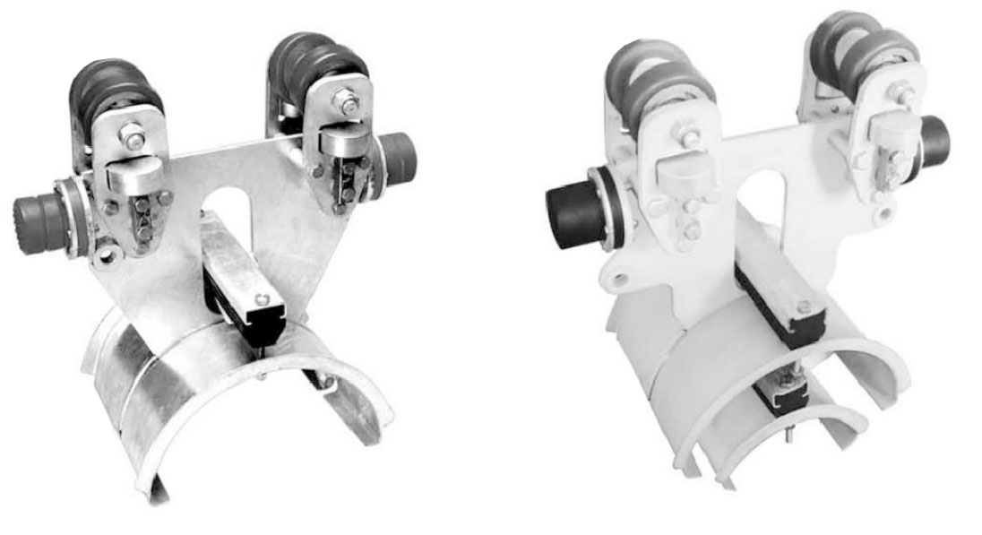電纜滑車是一種理想的物流供電系統,根據其軌道的不同可分為C型軌電纜滑車和I(H)型軌電纜滑車兩種。該系統對環境的要求比較低,運行平穩且不產生火花,在室內、室外、多塵、多灰及溫差較大的場合均能正常工作。扁電纜和圓電纜均能安裝使用,并在滑車的兩端裝有緩沖裝置,對電纜起保護作用。工具滑車上配有球鉸吊環,能自行校正懸掛物重心。目前電纜滑車已被廣泛應用于各種通用橋式起重機、門式起重機、電動葫蘆自行小車、倉庫、船廠、碼頭等起重設備的移動供電。